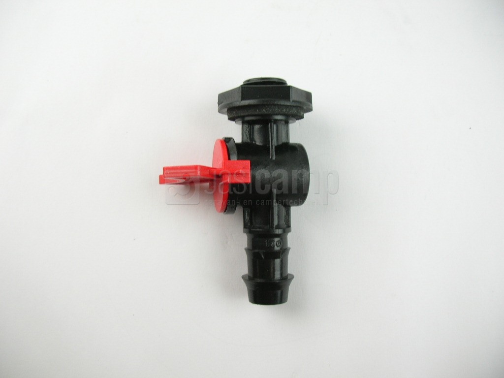 Aftapkraan zwart 1/2" x 20mm rode kraan. nr.24403