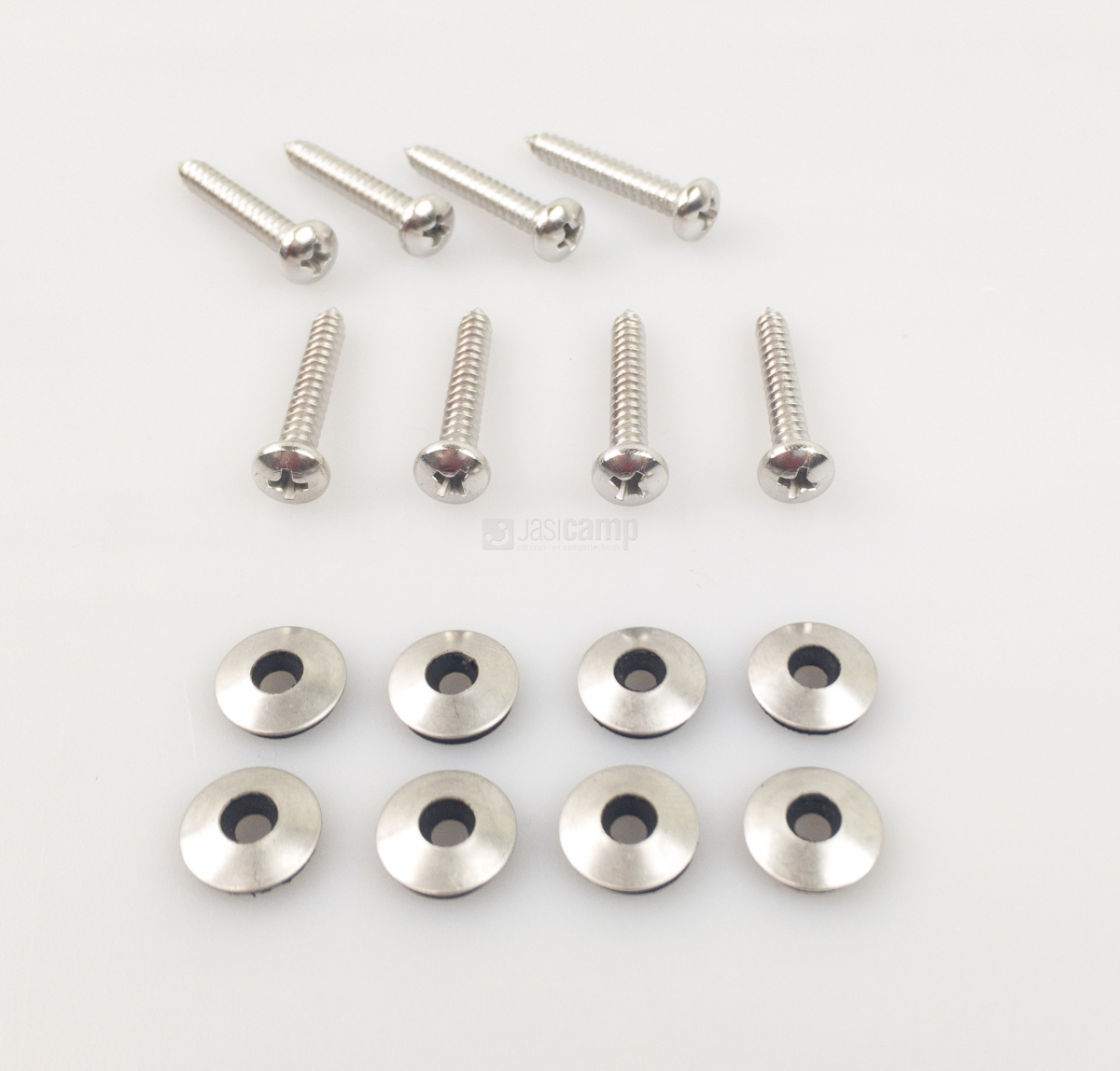 Bevestiging Set RVS schroeven met ring en rubber 8x om zonnepaneel aan hoekstuk te monteren.