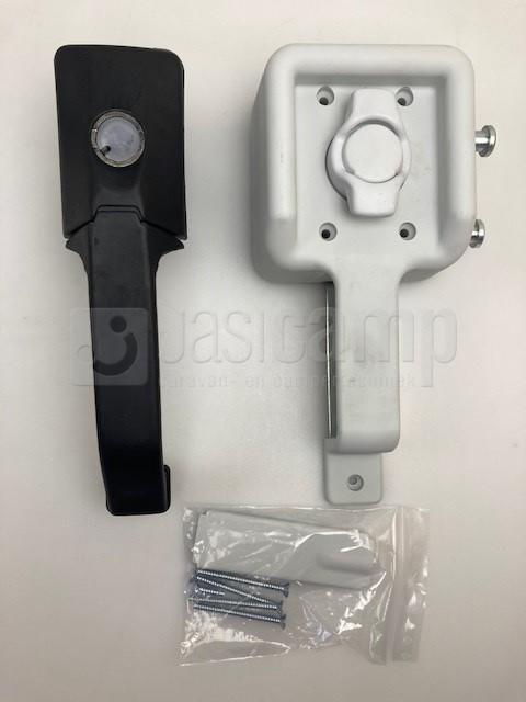 Compleet buitendeurslot Holzhauer. zwarte aantrekgreep en vierkante binnenkant met draaiknop.