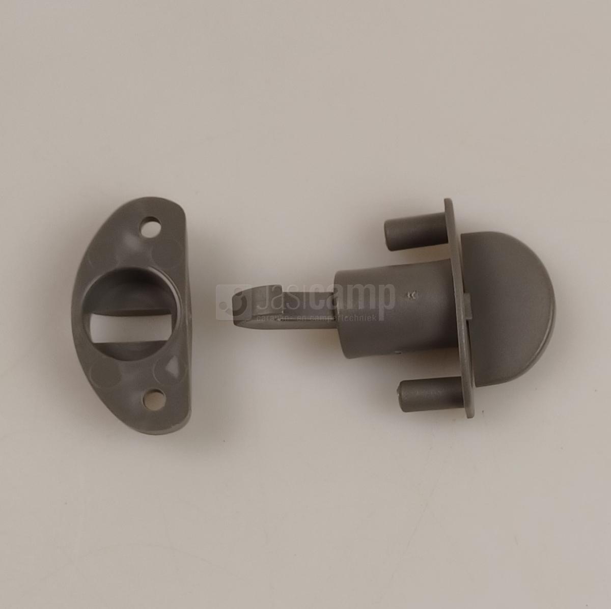 Hymer ladesluiting met wipslotje, ovaal greepje aan buitenkant kleur grijs (was zilver, maar is gewijzigd door Hymer)