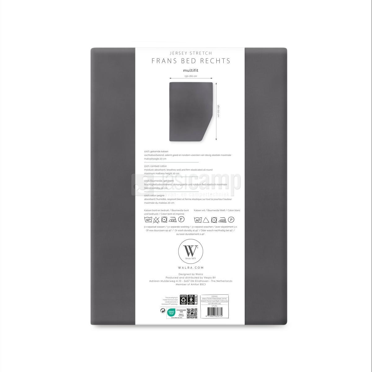 Jersey hoeslaken Frans bed rechts Antraciet nr. D1231515