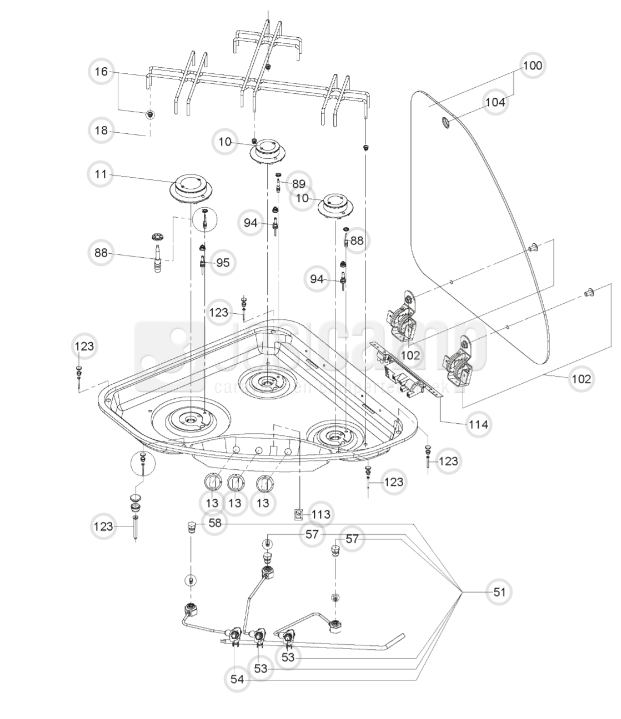 Rooster voor kookplaat Pi9023 (driehoek) nr 105311014 [alleen op bestelling leverbaar]