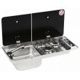 Aanrecht CAN Kombi met gedeelde glasplaat afdekking spoelbak LINKS piezo ontsteking nr. FL 1402 van 399 voor 359