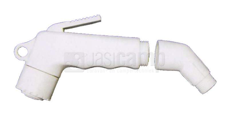 Douchekop wit met ophanghaak aansluiting 1/2" met knie verloopstuk naar 3/8 63152