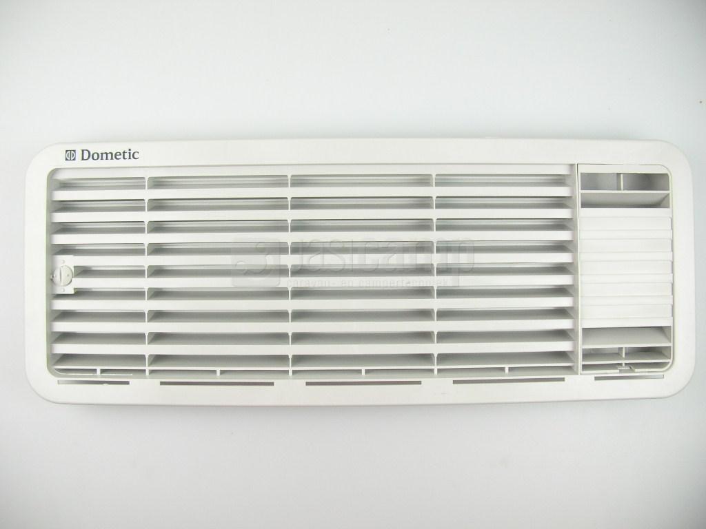 Koelkastrooster Dometic boven ronde hoek RAL7047 nr.241395241 met schuifje voor bevestiging en inzetstuk