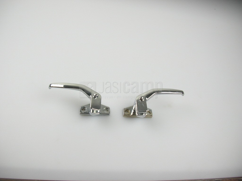 Raamgrendel metaal rechts + links dubbel pootje. nr.208/100-1 op=op
