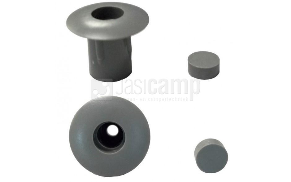 Grijze afdekdop lang met klein kapje donkergrijs 27 bu 15 bi lengte 21 mm KNAUS. nr.K246241 RAL7005 per stuk