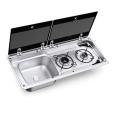 Kookspoelcombinatie 2-pits 2 glazen afdekplaten. Spoelbak links MO9722L nr 9620017486