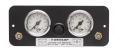 Optie 2 voor Dunlop hulpluchtveersets: 2 vent.+ontluchters, 2 manometers, compressor, 1 schakelaar. en rechthoekig paneel.