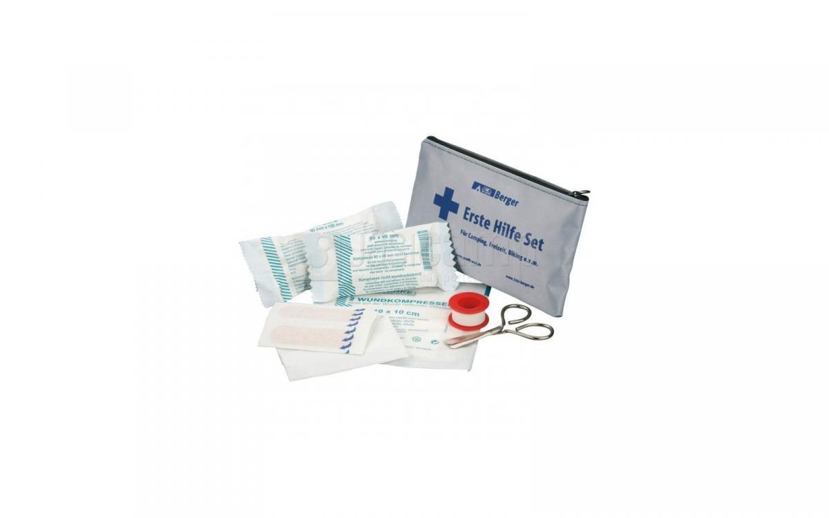 Verbandset eerste hulp mini, verband, pleisters, gaasjes en schaar in handig tasje met rits