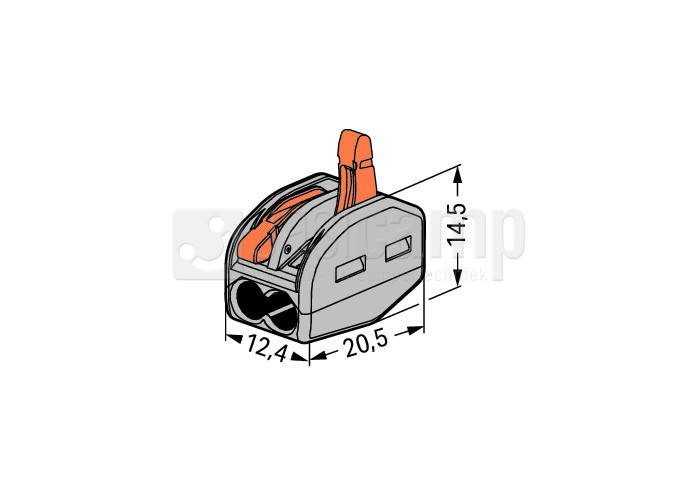 Wago verbindingsklemmen 2 polig voor draad tot 2x2,5 mm² Klassiek model met lange smalle hevel.